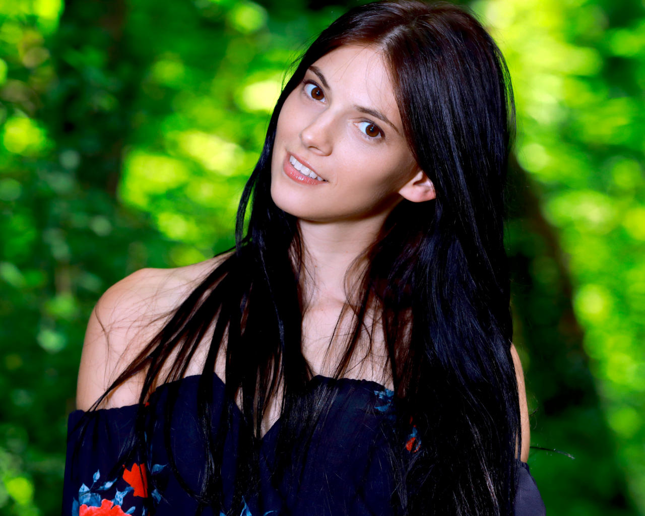 aleksandrina, model, dark hair, long hair, russian, smile, sweet, face, portrait