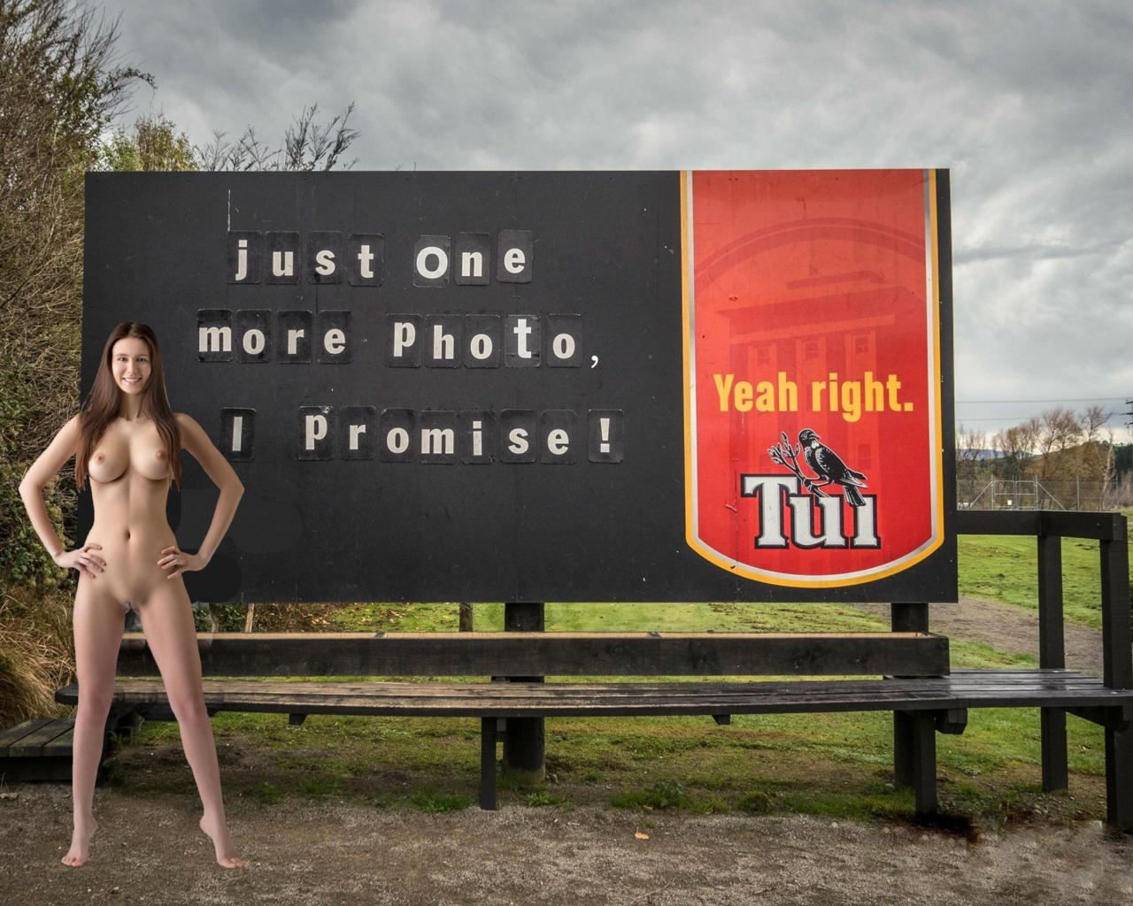 alisa i, alisa, jessica albanka, alisa amore, brunette, outdoors, sign, naked, boobs, big tits, nipples, shaved pussy, labia, spread legs, smile, funny, big boobs