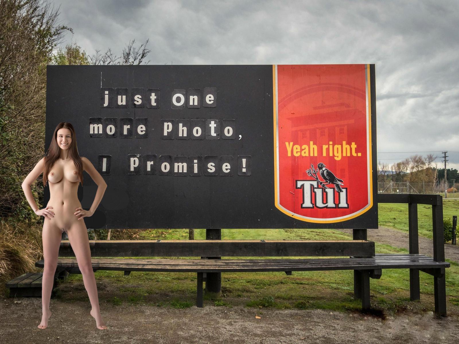 alisa i, alisa, jessica albanka, alisa amore, brunette, outdoors, sign, naked, boobs, big tits, nipples, shaved pussy, labia, spread legs, smile, funny, big boobs