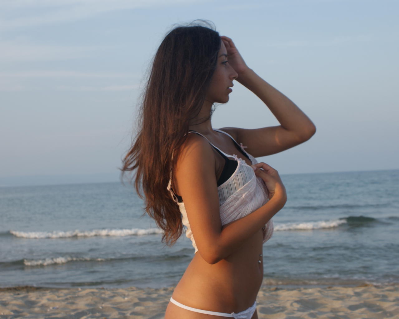sexy, babe, lingerie, beach, sensual, erotic, sea, model, long hair, outdoor, piercing