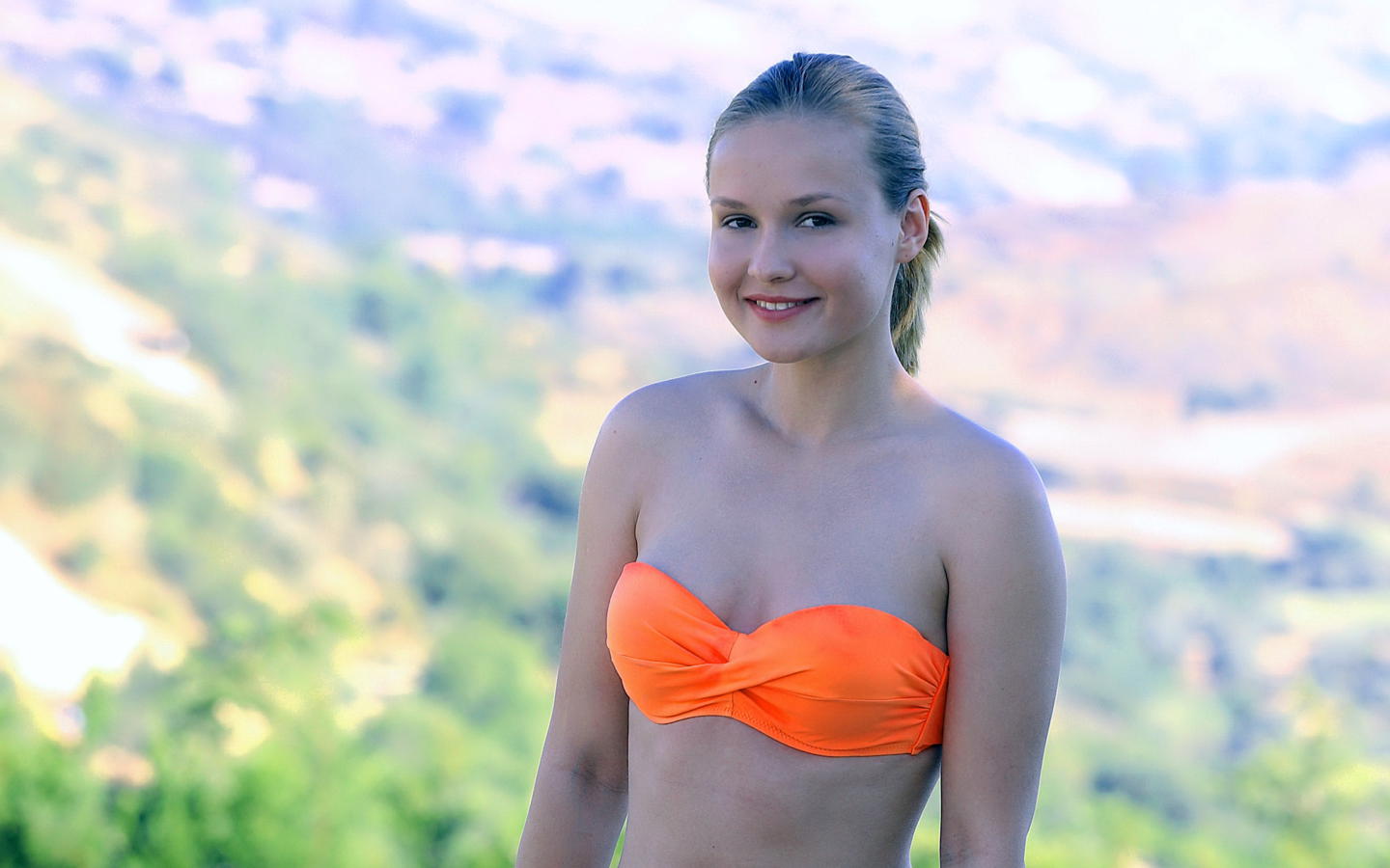 lucretia, pretty face, smile, bikini