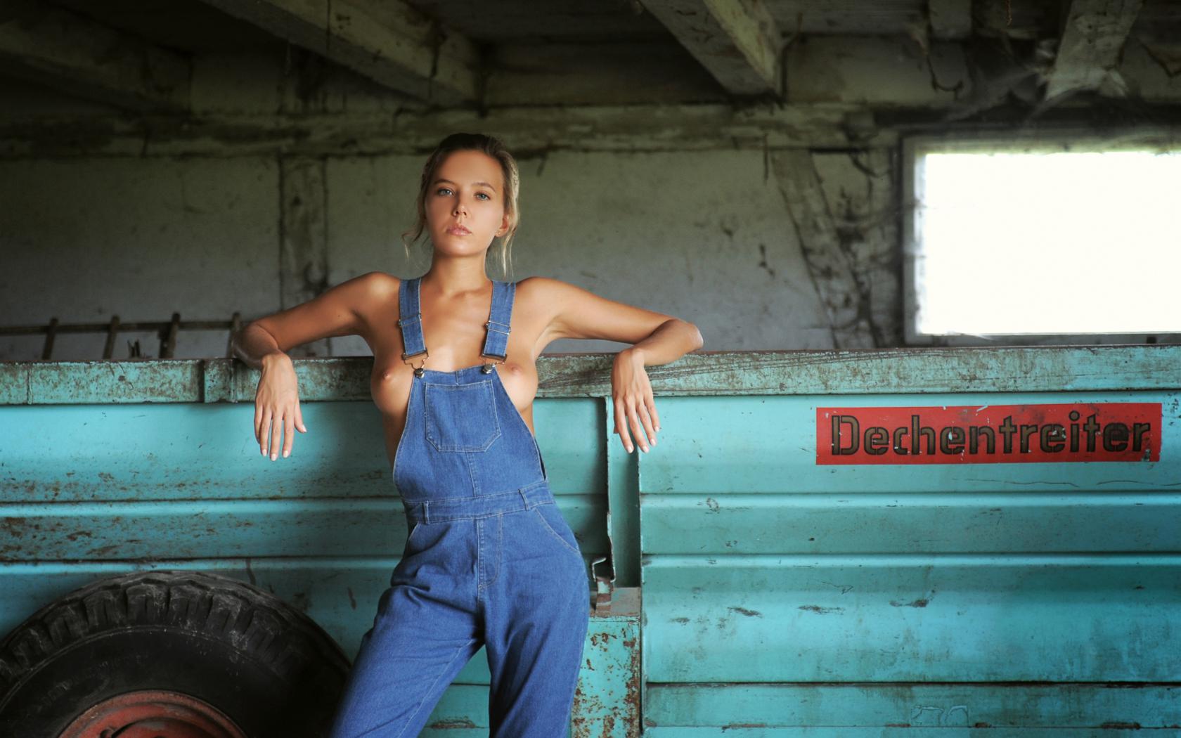 katya clover, clover, mango, caramel, mango a, brunette, barn, wagon, topless, tanned, boobs, tits, nipples, overalls, hi-q