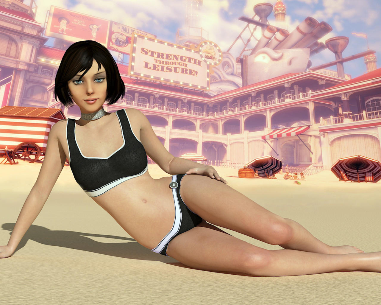 elizabeth, bioshock, bioshock infinite, fantasy, animation, game, beach, swimsuit