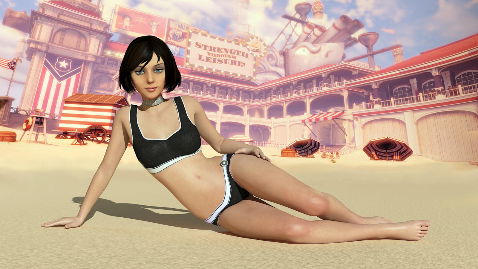elizabeth, bioshock, bioshock infinite, fantasy, animation, game, beach, swimsuit