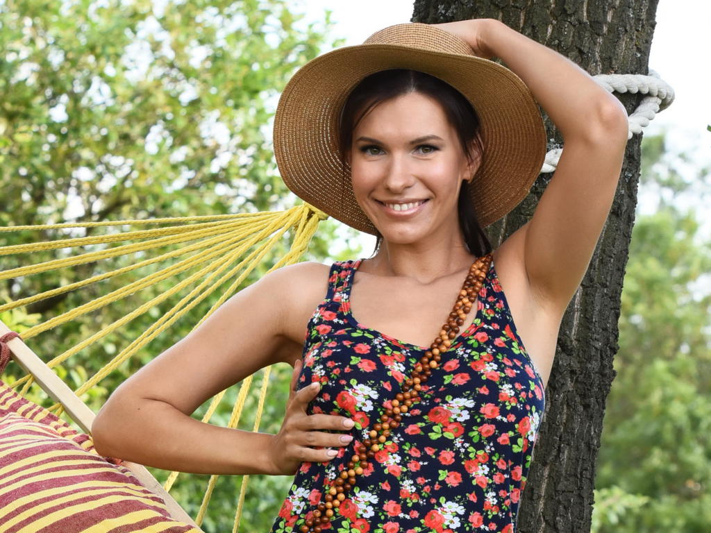 susi r, suzanna a, face, smile, handbra, hammock, dress, hat, nadia p, suzanna