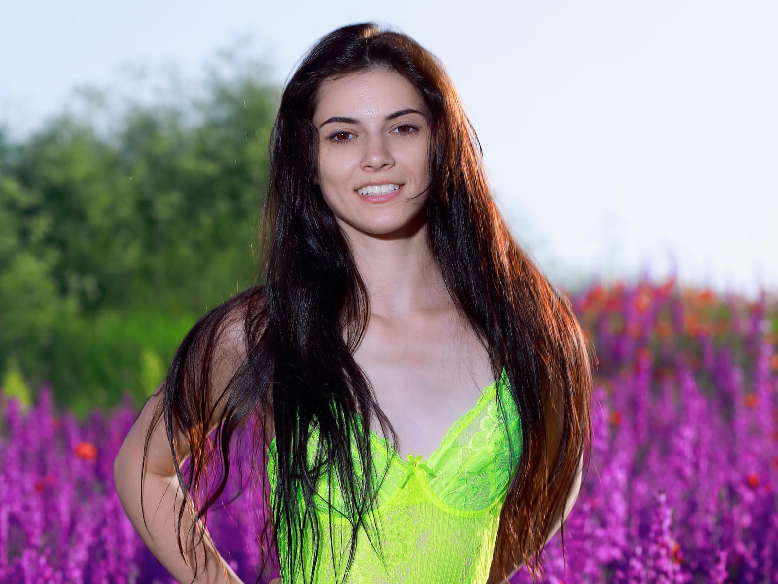 aleksandrina, spring vibes, beautiful, say it with flowers, flowers, smile, field, long hair
