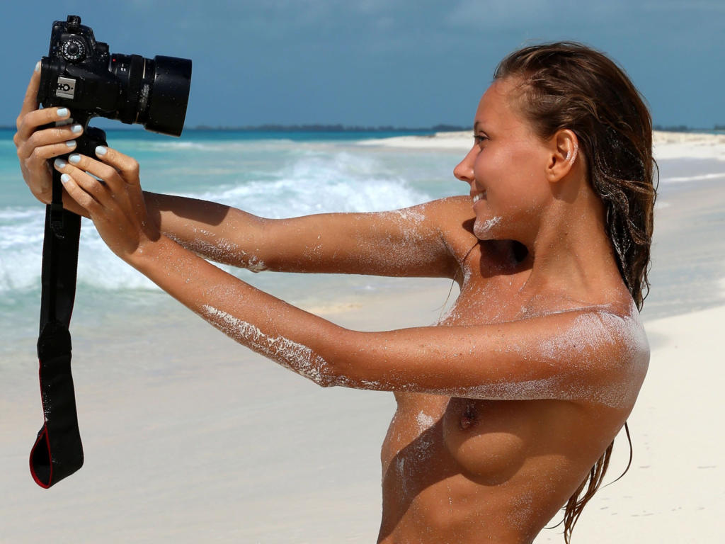 katya clover, brunette, outdoor, nude, camera, sea, tits, nipples, tanned, wet, smile, selfie, ocean, beach, caramel, mango a, clover