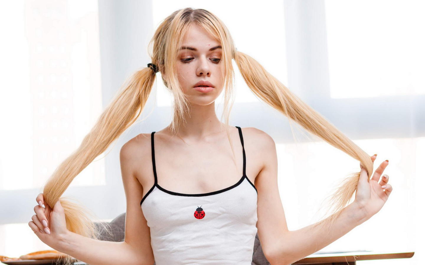 alexandra smelova, lingerie, totaly hot, see through, nipples, blonde, cute, ponytails