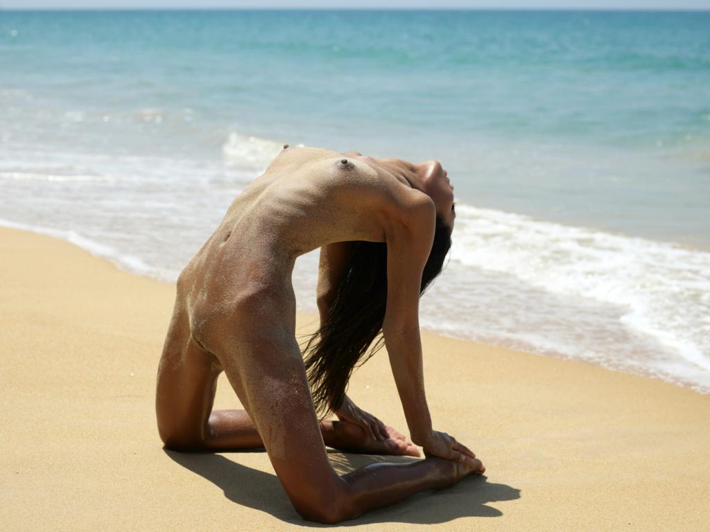 chloe, chloe r, chloe rose, brunette, beach, naked, sandy, boobs, tits, nipples, shaved pussy, labia, kneeling, hi-q