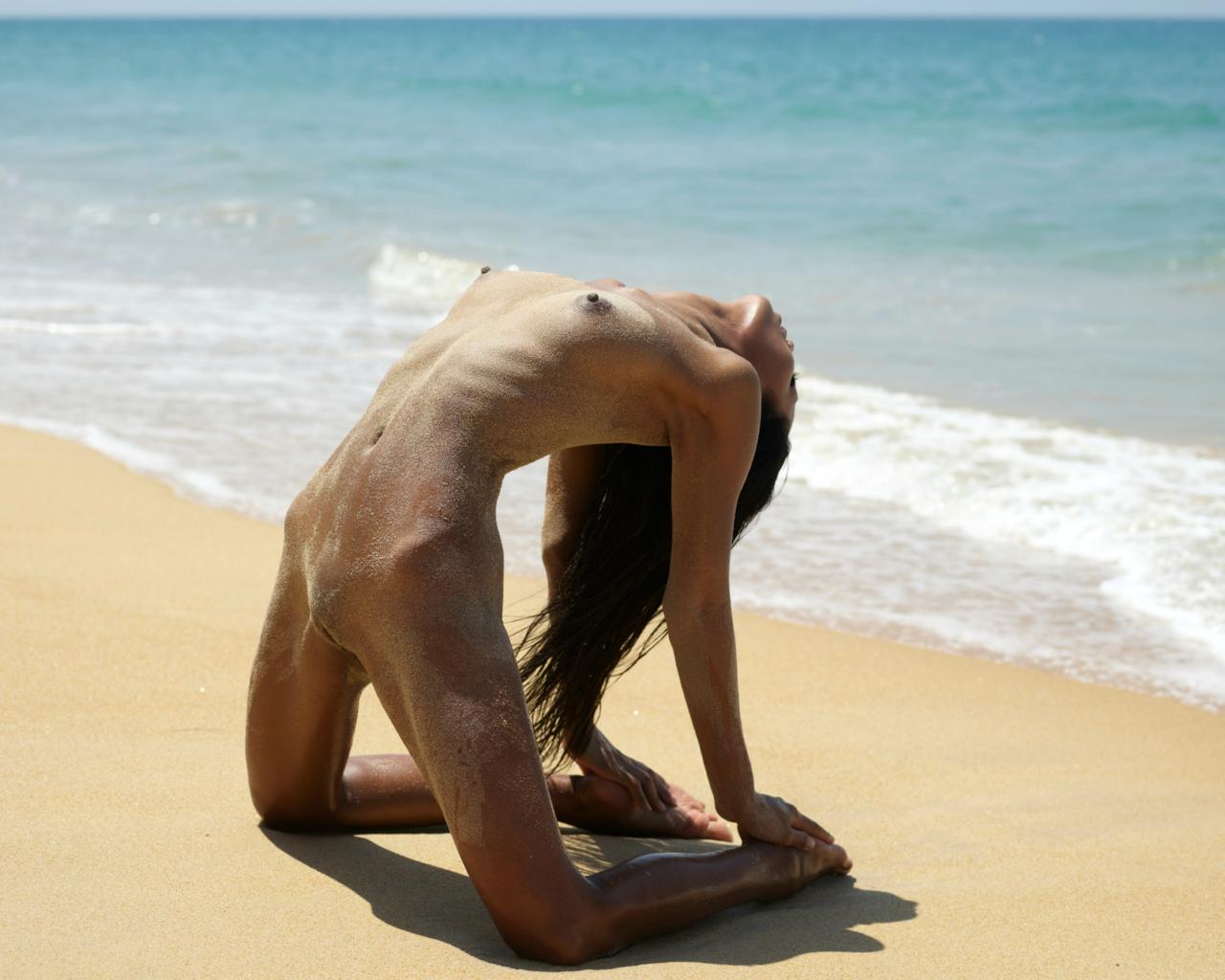 chloe, chloe r, chloe rose, brunette, beach, naked, sandy, boobs, tits, nipples, shaved pussy, labia, kneeling, hi-q