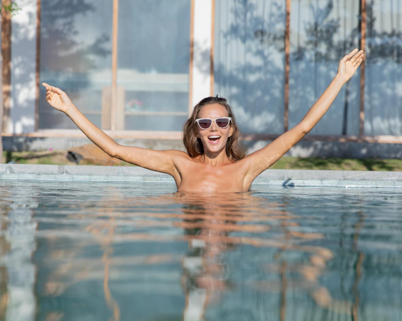 katya clover, katya, clover, caramel, mango a, ekaterina skaredina, naked, beauty, pretty, girl, hd, nude, wet, pool, smile, sunglasses, reflection, tanned