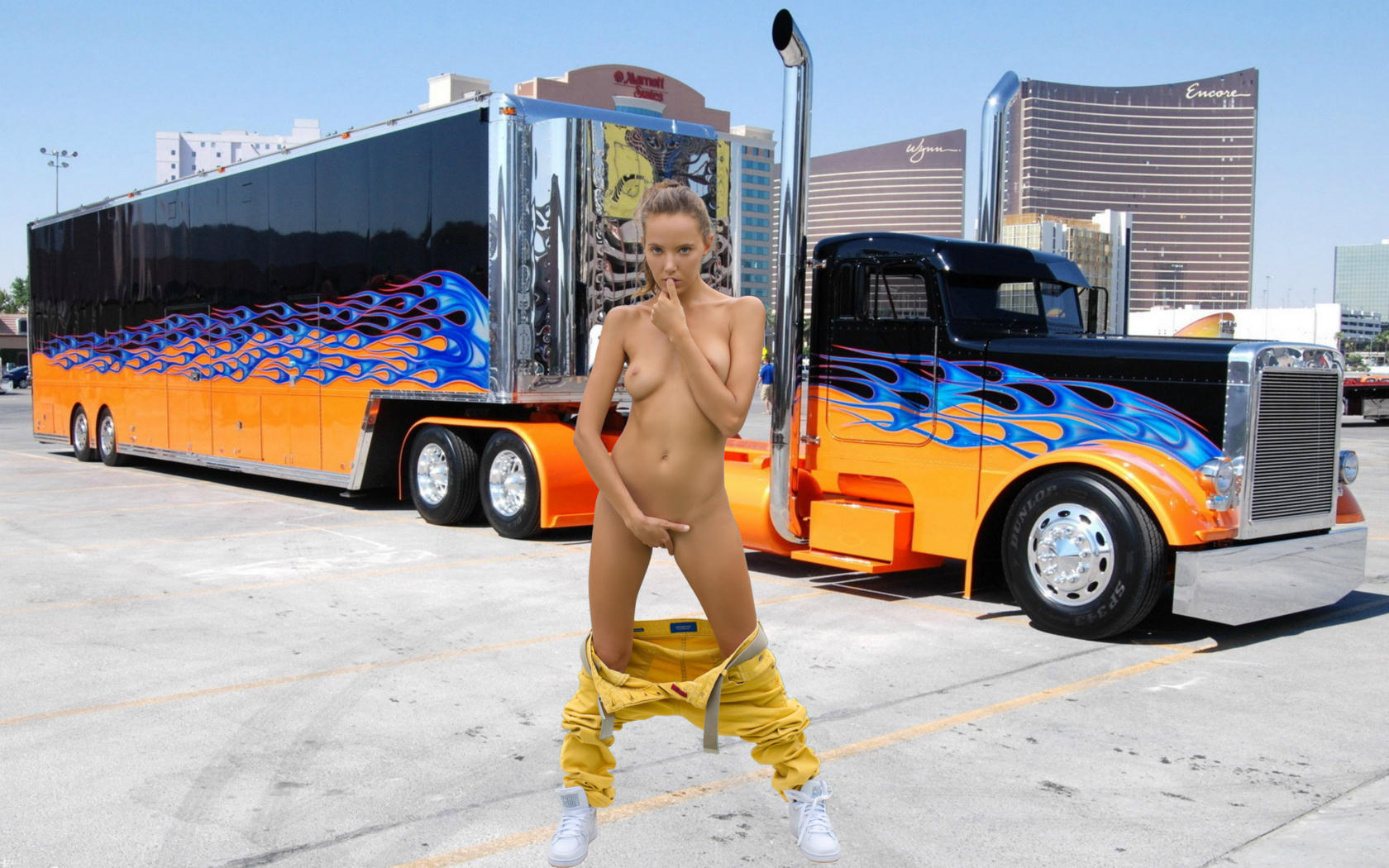 katya clover, clover, mango, caramel, mango a, brunette, truck, rig, naked, pants, undressing, boobs, tits, nipples, spread legs, running shoes, hi-q