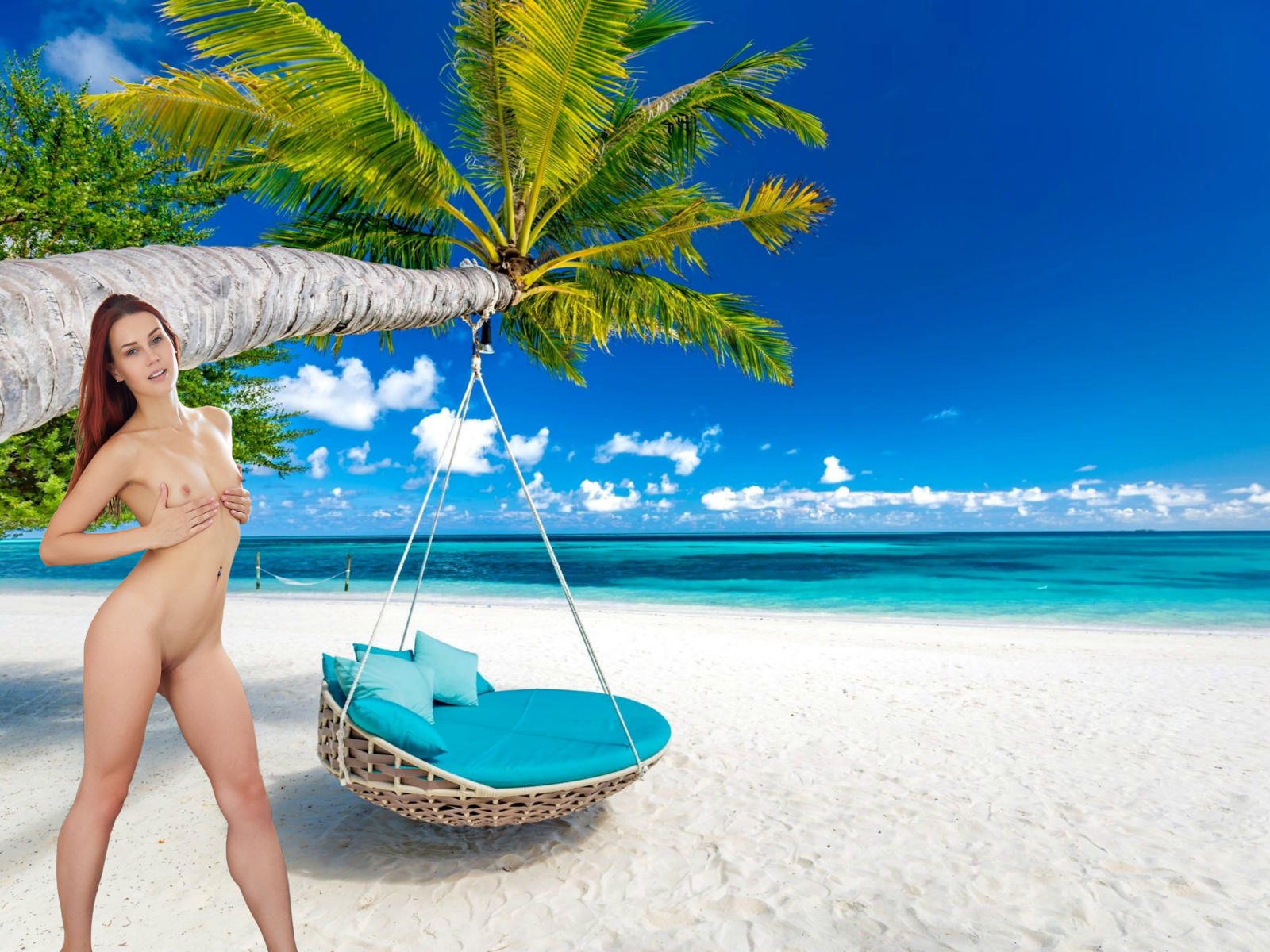 charlie red, charli red, tereza, redhead, beach, naked, boobs, tits, nipples, handbra, shaved pussy, smile, hi-q