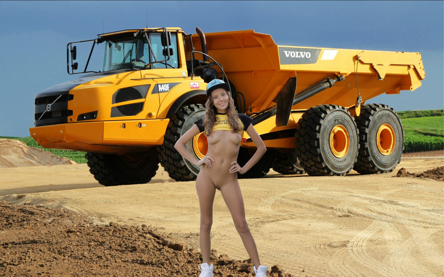 katya clover, clover, mango, caramel, mango a, brunette, outdoors, truck, volvo, naked, hat, boobs, tits, nipples, shaved pussy, labia, tanned, teeshirt, running shoes, smile, hi-q