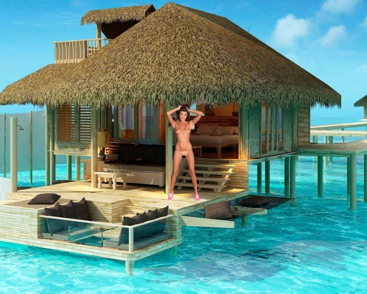 maria ryabushkina, maria, tara, melena, maria rya, brunette, beach house, water, naked, tanlines, boobs, tits, nipples, shaved pussy, smile, hi-q