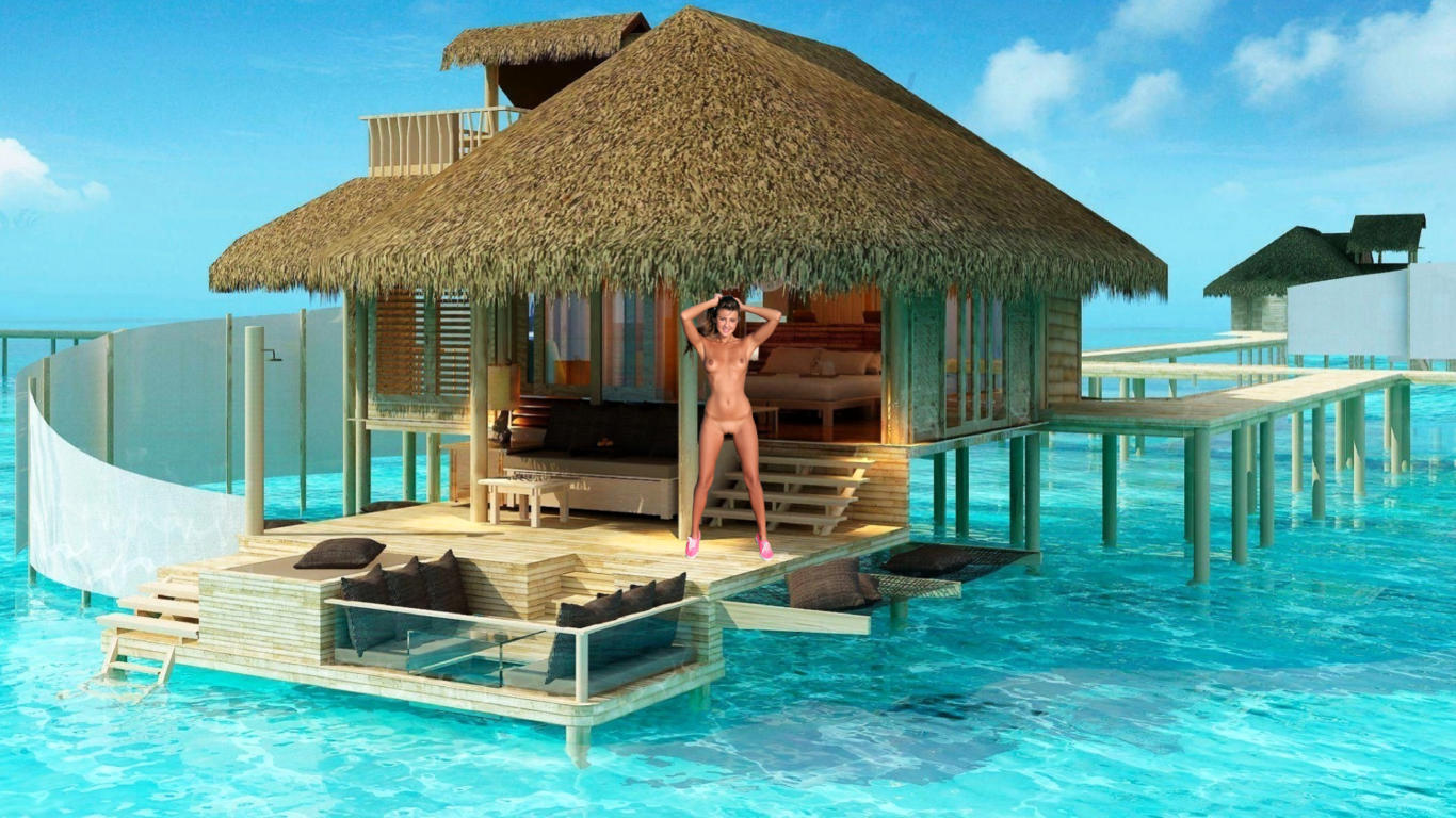 maria ryabushkina, maria, tara, melena, maria rya, brunette, beach house, water, naked, tanlines, boobs, tits, nipples, shaved pussy, smile, hi-q