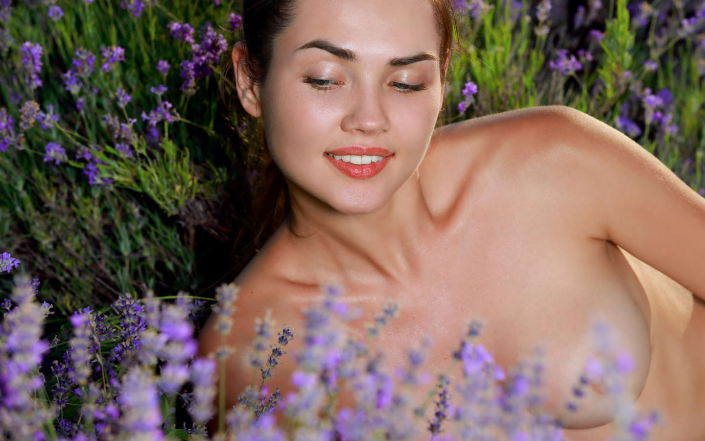georgia, nude, tanned, boobs, tits, nipples, brunette, field, flowers