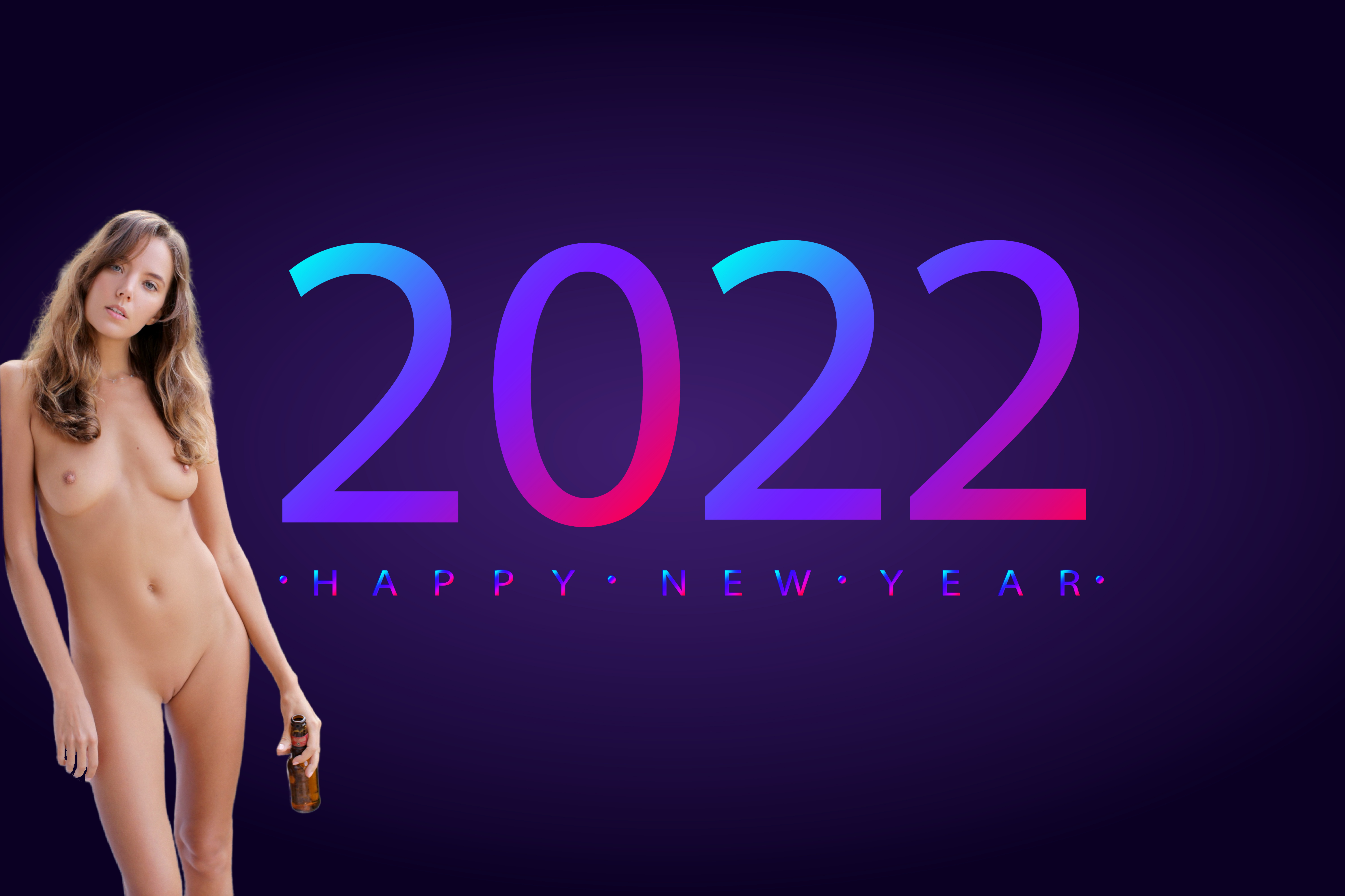 katya clover, clover, mango, caramel, mango a, brunette, happy new year, naked, tanned, boobs, tits, nipples, shaved pussy, beer bottle, 2022, hi-q
