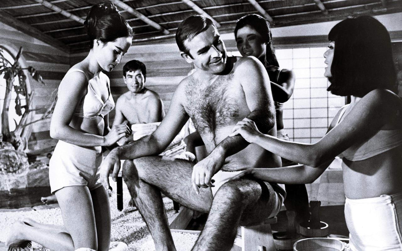 sean connery, james bond, scottish, actor, 3 babes, asian, teasing, massage, ascot special, monochrome, bond girl, foxy, you only live twice