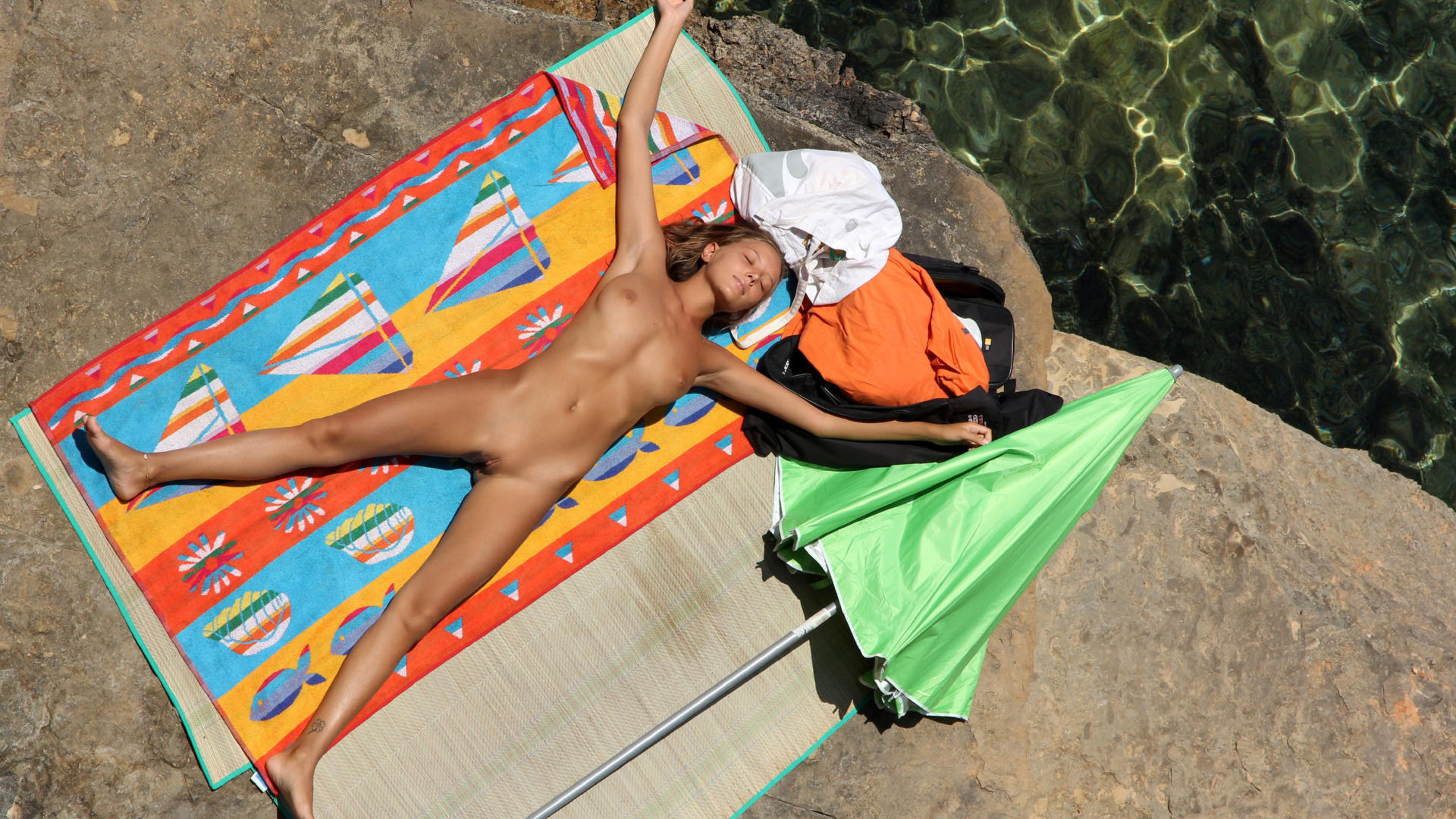 katya clover, clover, mango, caramel, mango a, brunette, naked, towel, pov, naked, tanned, boobs, tits, nipples, shaved pussy, labia, spread legs, rocks, water, hi-q