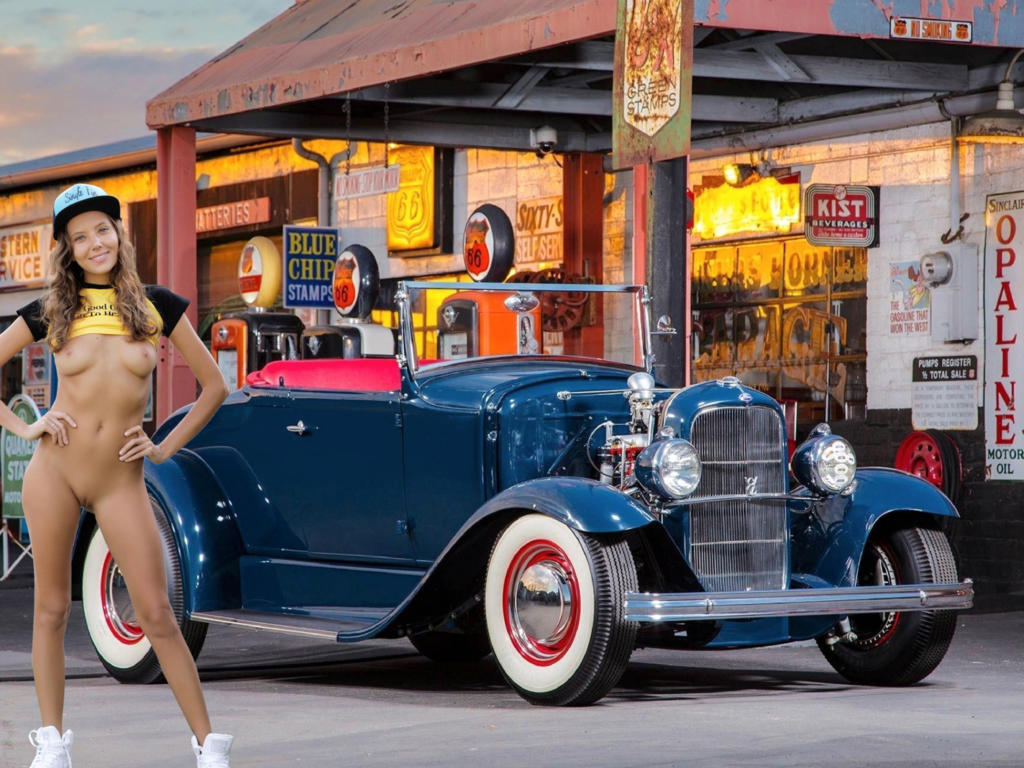 katya clover, clover, mango, caramel, mango a, brunette, hot rod, teeshirt, naked, boobs, tits, nipples, shaved pussy, labia, spread legs, hat, running shoes, smile, hi-q