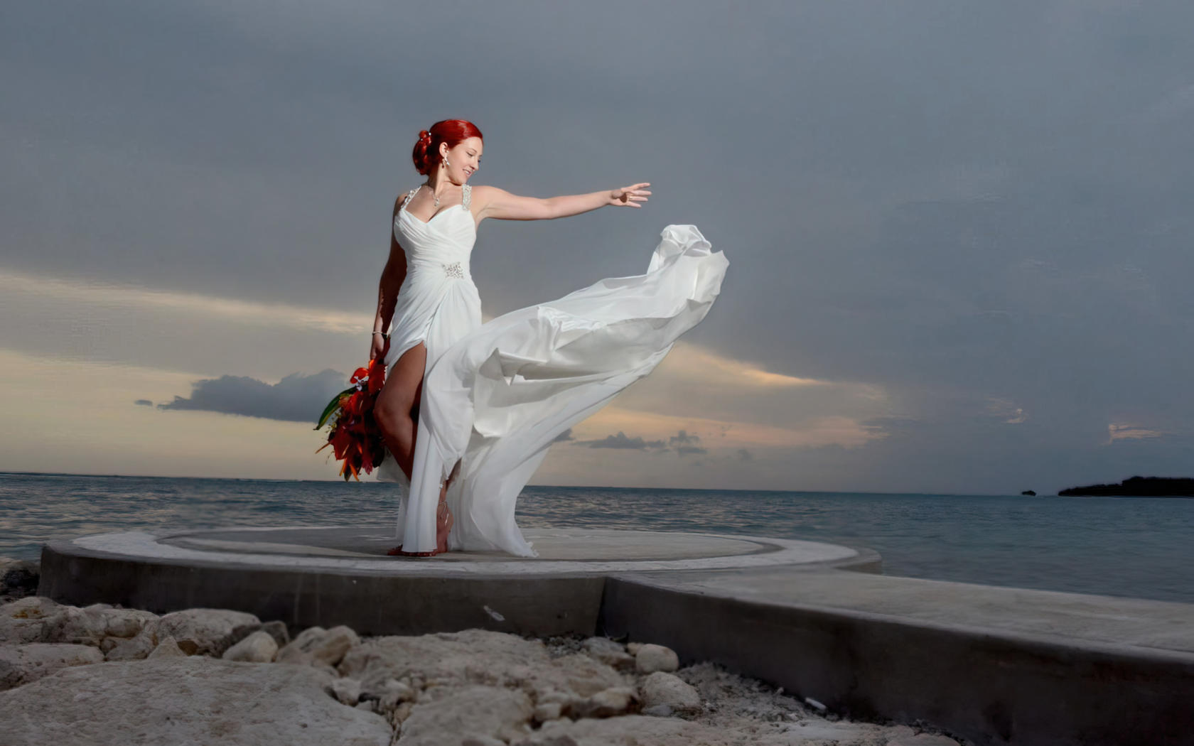 ← Go back: bride, red hair, wedding dr...