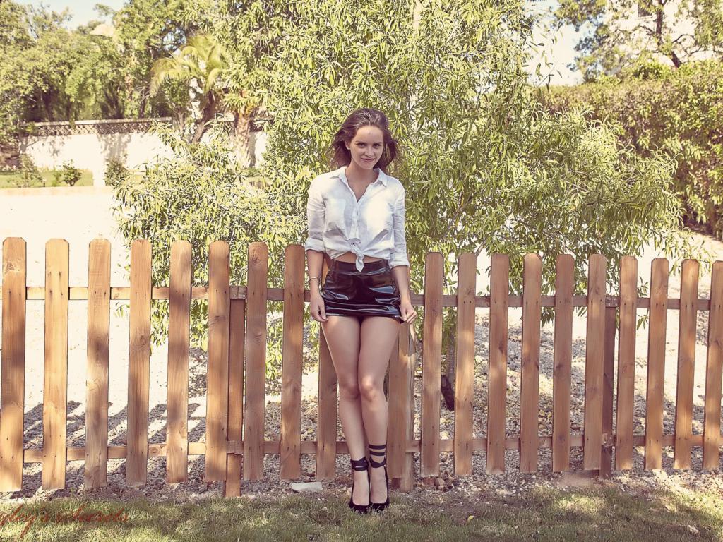 adele taylor, brunette, non nude, blouse, skirt, fence, legs, high heels