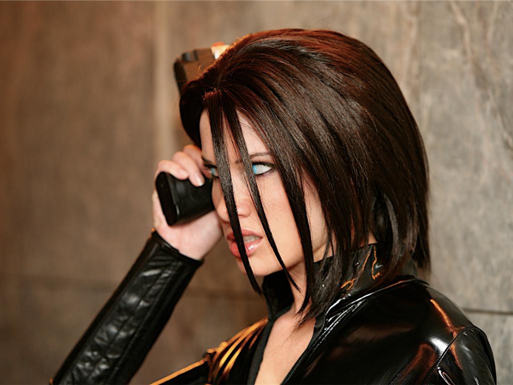 ← Go back: brunette, gun, blue eyes