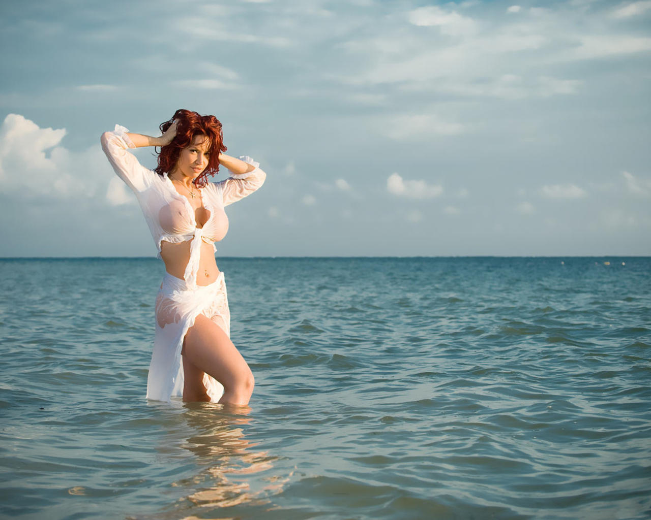 bianca beauchamp, redhead, boobs, wet, busty babe, sea, bombooclaaat, canadian, model, sexy babe, fetishqueen, heaven, clouds, erotic art, wet clothes, pin up style