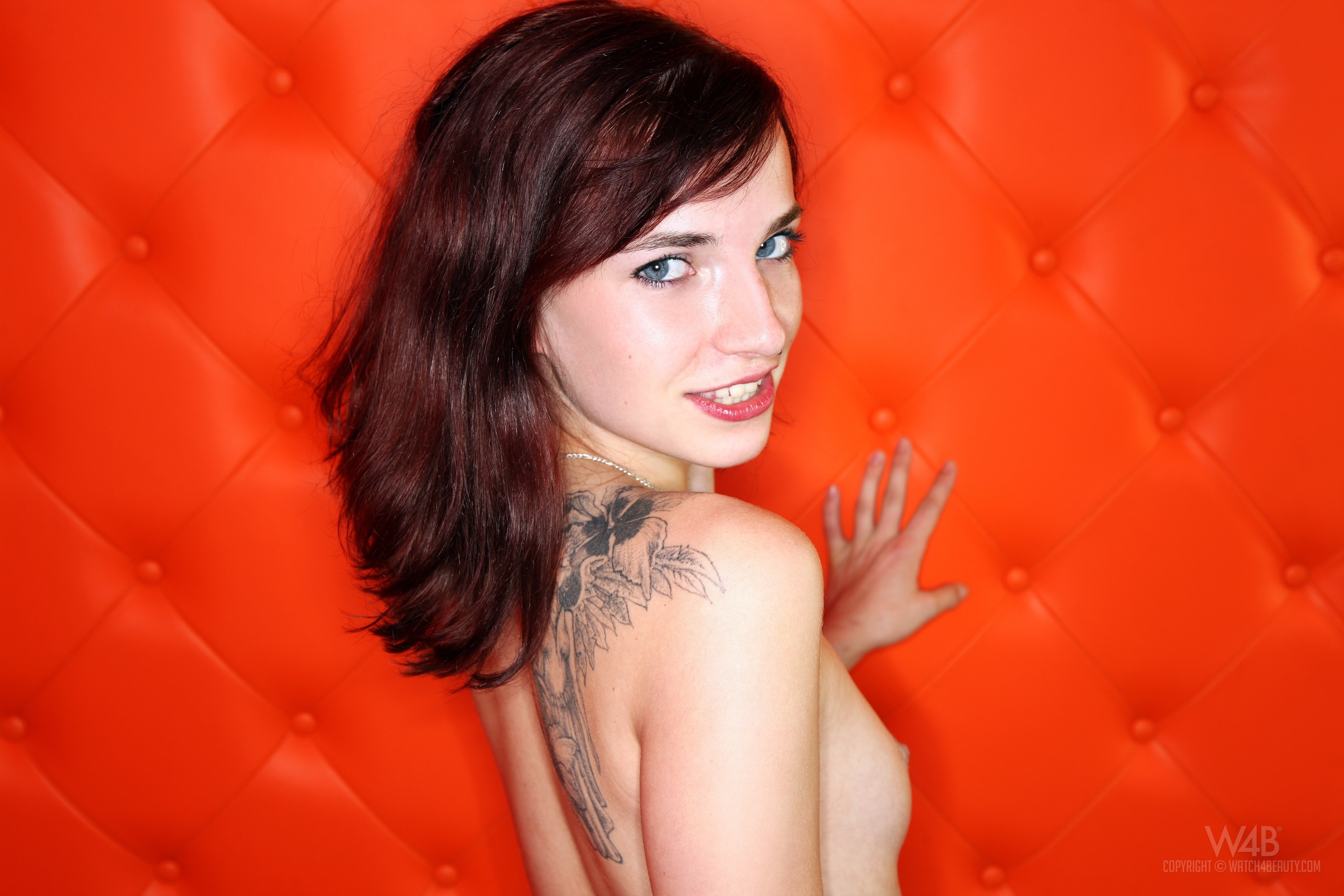 ← Go back: topless, brunette, side vie...