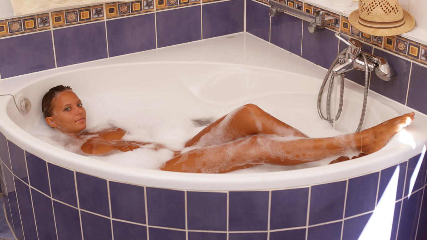 mango a, brunette, sexy girl, nude, naked, bath, bathtub, suds, hot legs, clover, caramel, katya clover