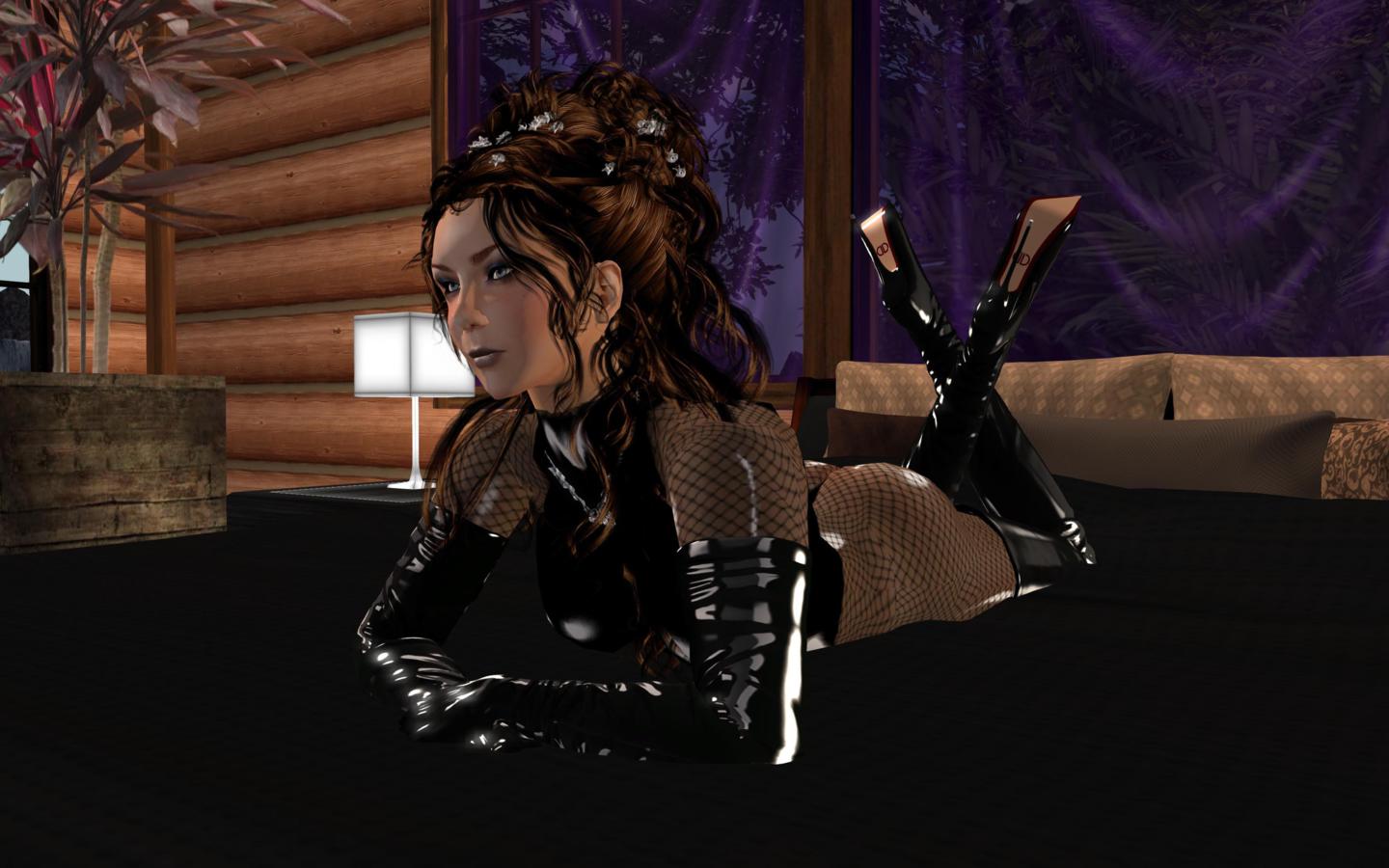3d, babe, lingerie, latex, bed, sexy, boots, virtual, fetish, brunette, laying, high boots, fishnet, ass, fetish babe, 3d latex, babes in boots