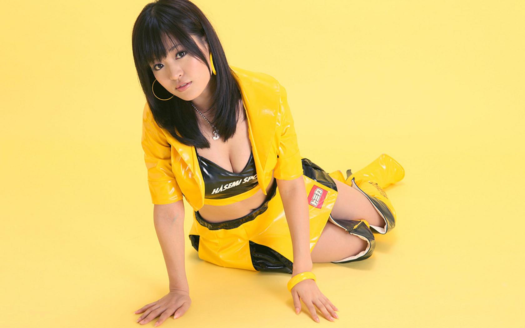 toshimi takahashi, boots, race queen, pvc, top queen, asian, sexy babe, brunette, miniskirt, jacket, top, decollete, delicious, hi-q, shiny clothes, fetish babe, babes in boots