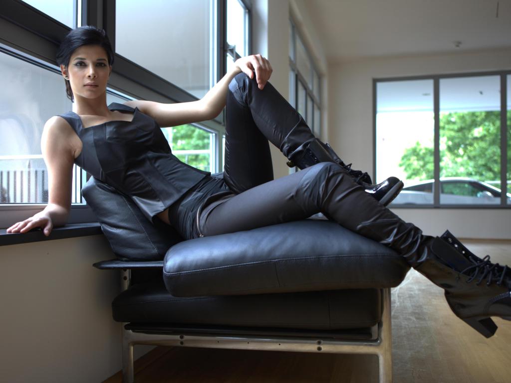 micaela schaefer, german, professional nudist, model, brunette, sexy dressed, personality, starlet, ankle boots, window, micaela, hi-q, real celebs wall