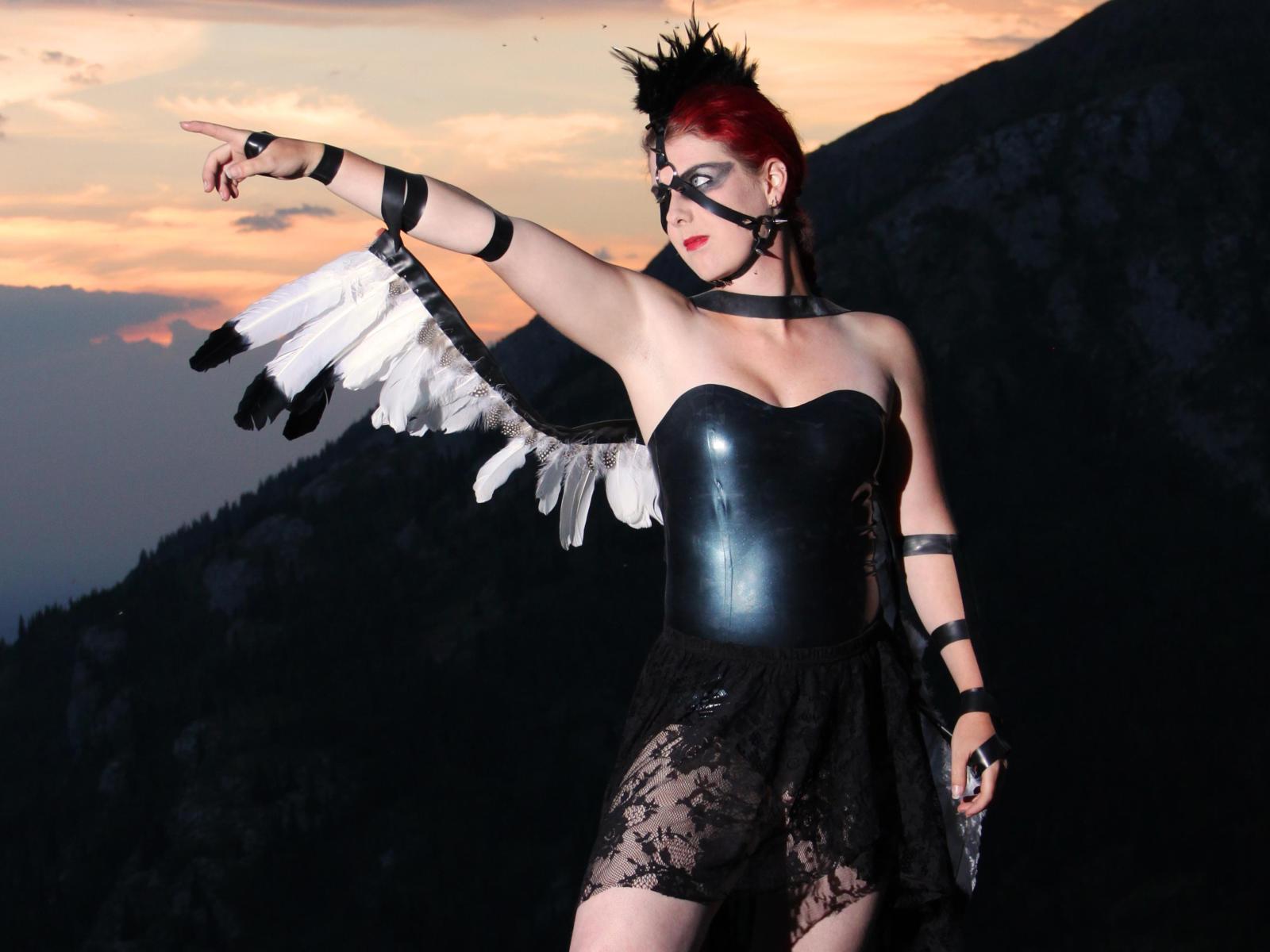 redhead, model, slim, sexy babe, short hair, outdoor, phantasie, fancy dressed, latex, corset, c-tru, miniskirt, feathers, make up art, erotic, lexie rain, fantasy, fetish babe