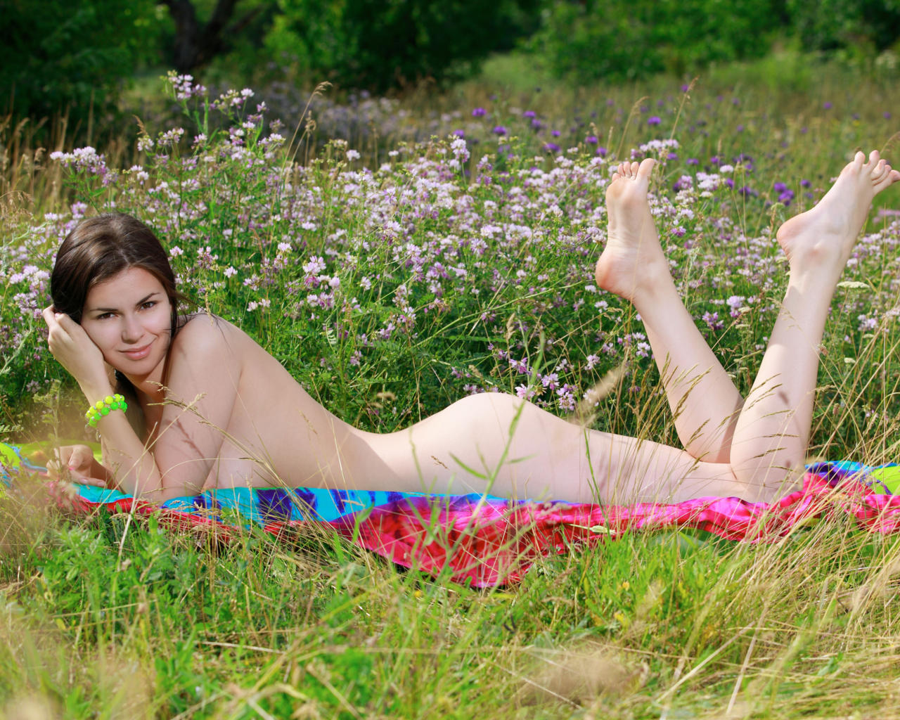 karolina young, brunette, sexy girl, adult model, nude, naked, ukrainian, outdoors, meadow, long hair, view, look, hi-q