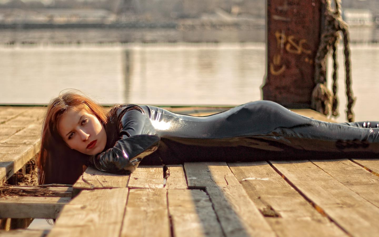 young, redhead, alternative, amateur, model, slim, sexy babe, long hair, posing, laying, outdoor, erotic, red lips, black, latex, catsuit, fullsuit, shiny, rubber, fetish, riga, fetish babe