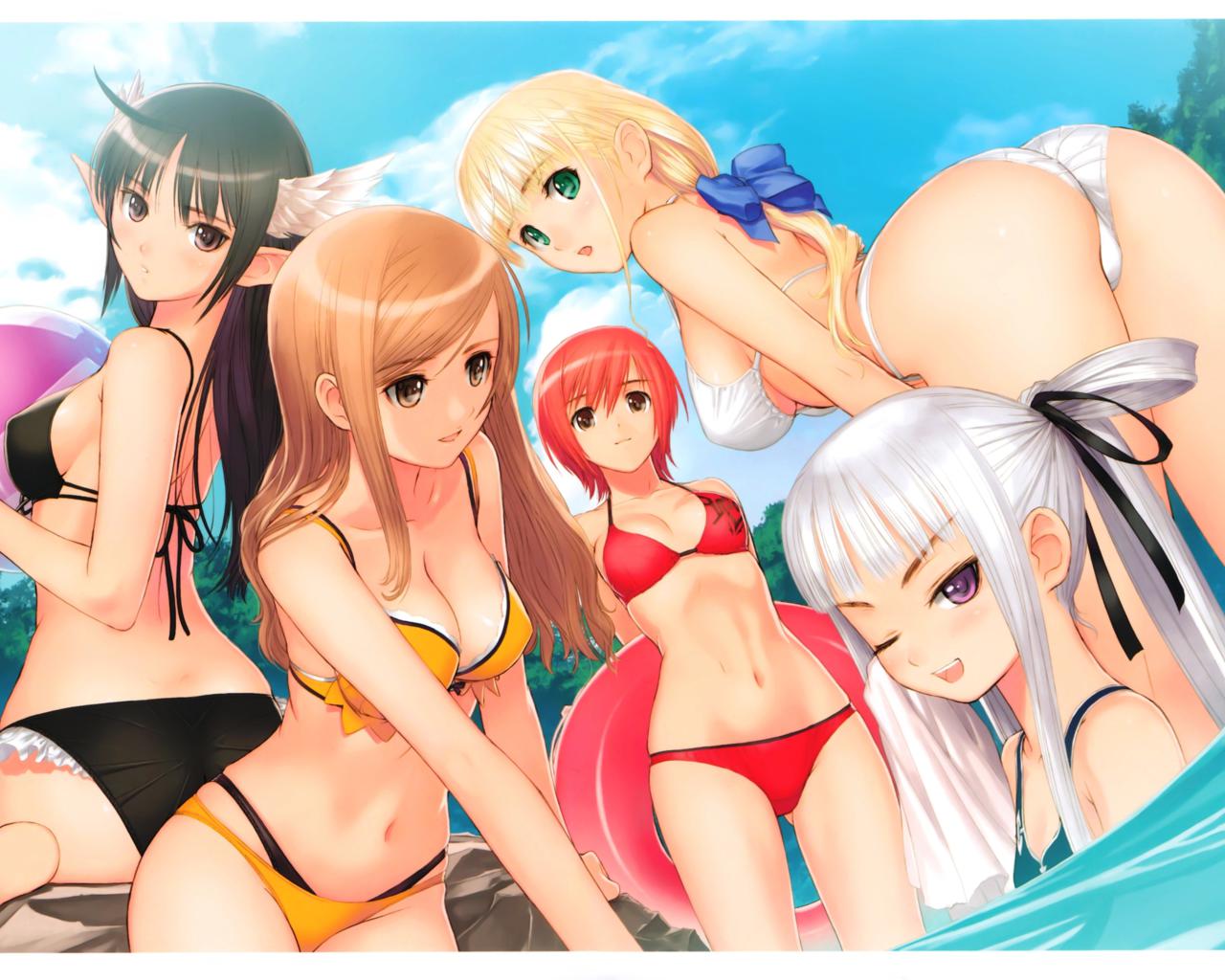 tony taka, hentai, hot, sexy, boobs, breasts, bikini, group, blonde, red-haired, dark hair, long hair, short hair, water, sea, ribbon, ass, sideboob, swimsuit, brown hair, green eyes, brown eyes, purple eyes, white hair, small boobs, big boobs, small brea