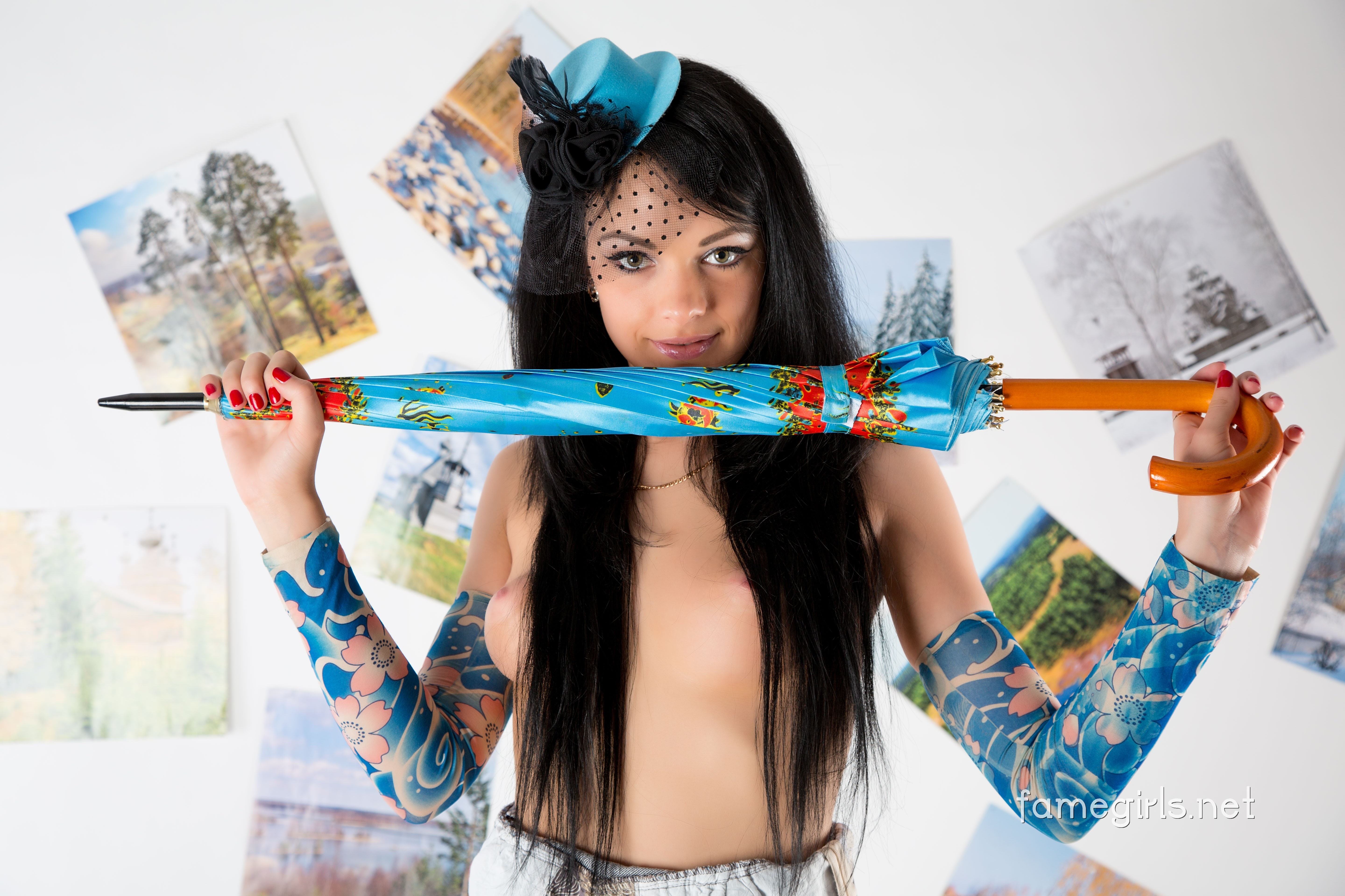 katie, brunette, sexy girl, adult model, lingerie, umbrella, hat, veil, long hair, view, look, beautiful, :), skinny, delicious, sexy, perfect girl, small tits, tiny tits, hi-q, close up, young, sexy babe, pin up style