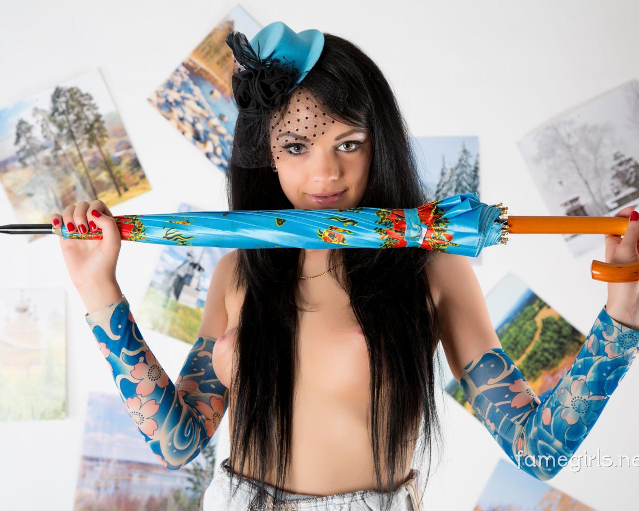 katie, brunette, sexy girl, adult model, lingerie, umbrella, hat, veil, long hair, view, look, beautiful, :), skinny, delicious, sexy, perfect girl, small tits, tiny tits, hi-q, close up, young, sexy babe, pin up style