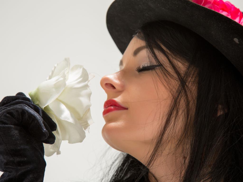 katie, brunette, sexy girl, adult model, long hair, flower, gloves, hat, gorgeous lips, lovely face, :), beautiful