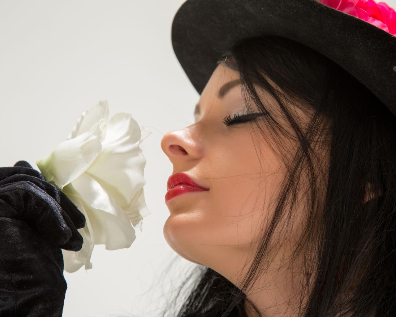 katie, brunette, sexy girl, adult model, long hair, flower, gloves, hat, gorgeous lips, lovely face, :), beautiful