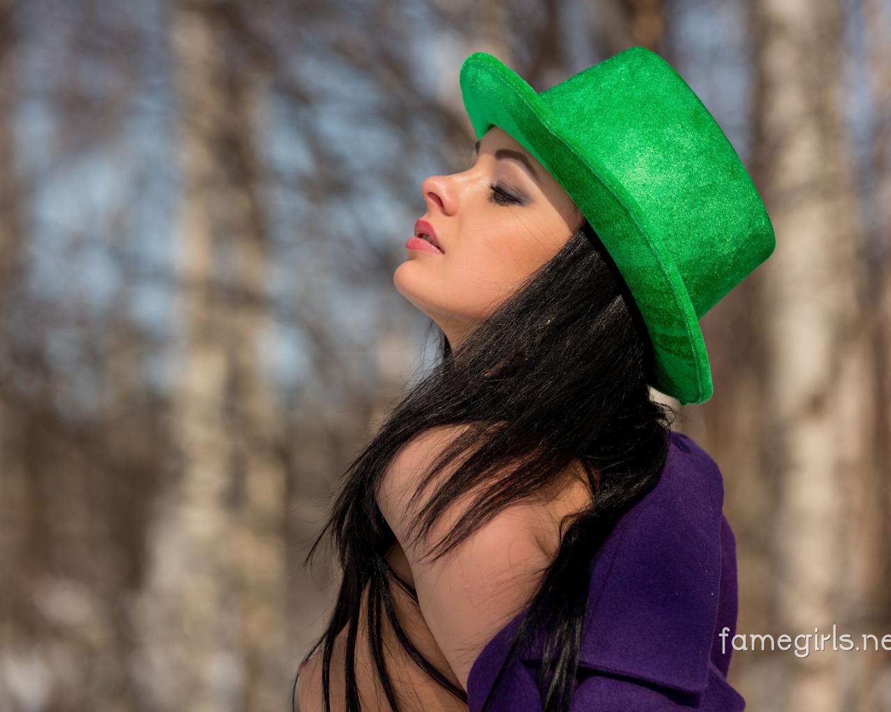 katie, brunette, sexy girl, adult model, :), beautiful, coat, hat, long hair