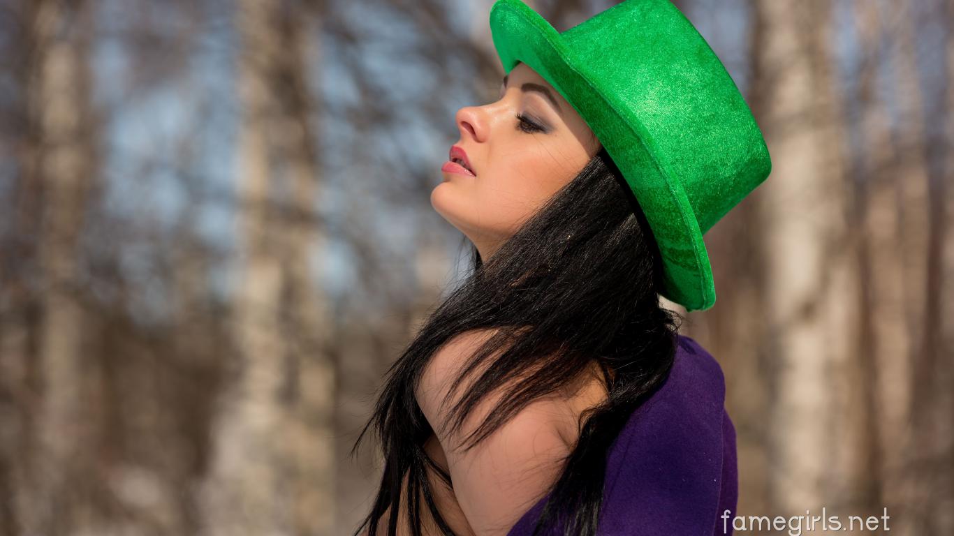 katie, brunette, sexy girl, adult model, :), beautiful, coat, hat, long hair