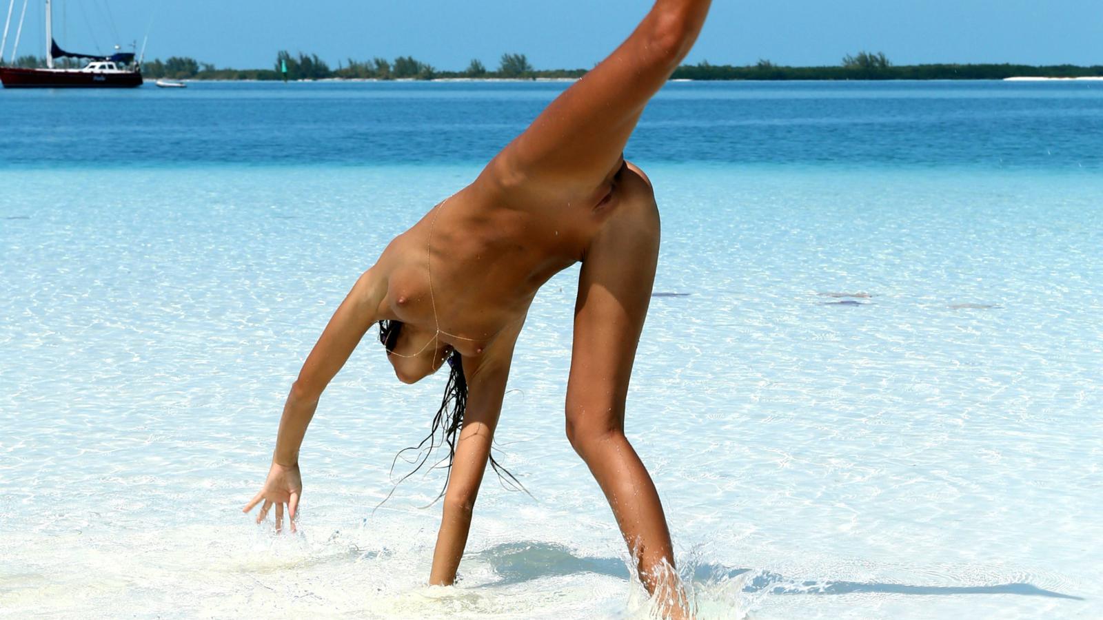 katya clover, clover, mango, beach, naked, small tits, nipples, shaved pussy, ass