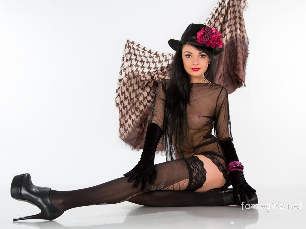 katie, brunette, sexy girl, adult model, lingerie, stockings, beautiful female legs, high heels, peignoir, hat, lingerie series