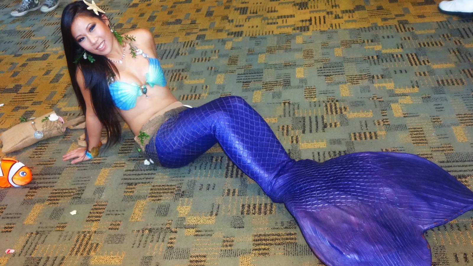 young, slim, exotic, cosplayer, amateur, model, sexy babe, asian, long hair, posing, outdoor, sexy dressed, cosplay, arielle, latex, thumbelina, mermaid, costume, water, hi-q