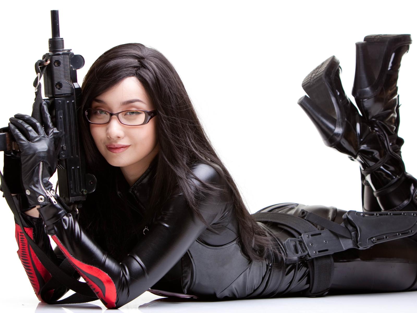 alodia, brunette, exotic, cosplayer, amateur, model, slim, asian, sexy babe, long hair, laying, shiny, lycra, catsuit, pvc, knee boots, cosplay, the baroness, girls and guns, uzi, erotic, smile, hi-q, girls and guns, alodia gosiengfiao, babes in boots, fetish babe