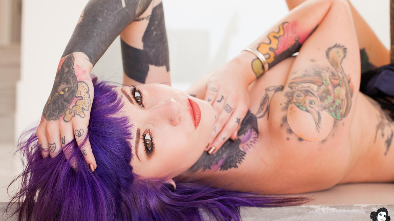 tattoo, brunette, nude, boobs, naked, short, legs, sexy, face, hair, beautiful, body, suicide girls, rebecca crow, katherine suicide, katherine, hi-q, close up, erotic, tattoos, body art, purple hair