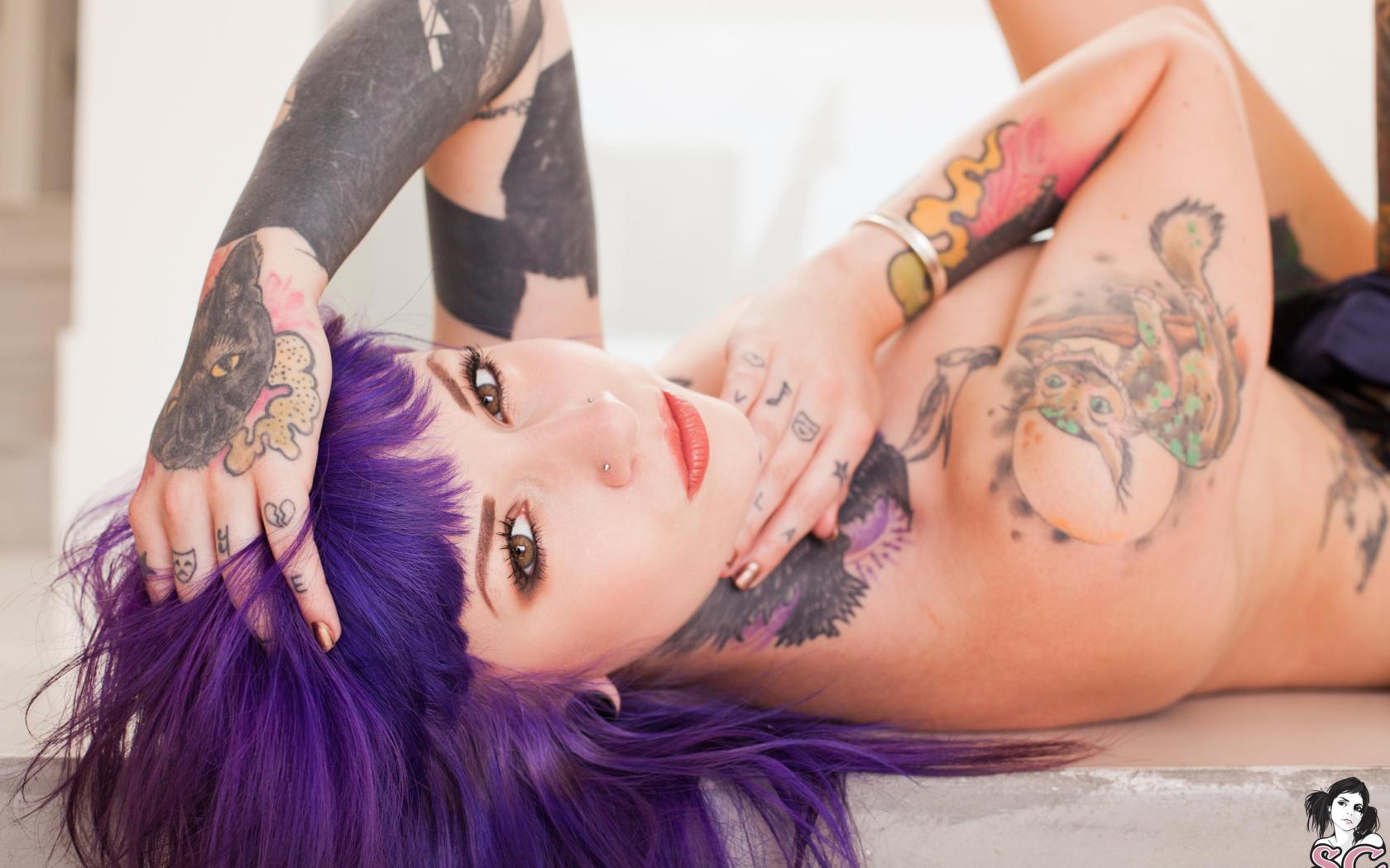 tattoo, brunette, nude, boobs, naked, short, legs, sexy, face, hair, beautiful, body, suicide girls, rebecca crow, katherine suicide, katherine, hi-q, close up, erotic, tattoos, body art, purple hair